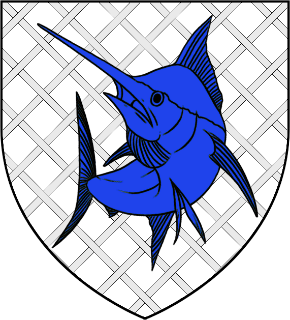 家族纹章是白底银回纹上的一条跳跃蓝色剑鱼。[1]箴言未知。