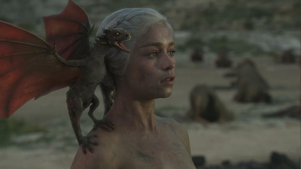 - 毫无疑问,原著第一部的最后一幕就是剧集的最后一幕。此外剧组表示丹妮莉丝肩头的那条龙是卓耿。