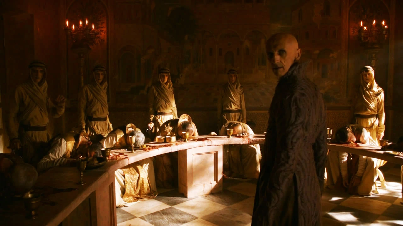 瑟曦和提利昂会面,表示后悔自己和詹姆上床并育有三子/女,她说也许乔佛里的暴力性格是对自己和詹姆乱伦的惩罚。提利昂指出,她的另两个子女—弥塞菈和托曼都是非常善良的孩子。