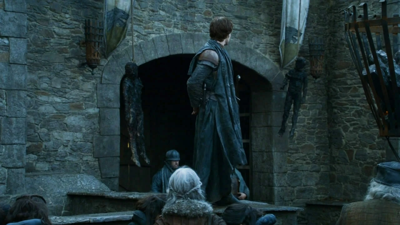 临冬城处于铁种的统治之下。席恩·葛雷乔伊一觉醒来发现欧莎不见了,她已经和阿多, 布兰·史塔克, 瑞肯·史塔克以及冰原狼出逃。席恩因此斥责罗伦。罗伦反驳说席恩也应当为此负责,因为席恩和欧莎上床,放松了警惕,席恩愤怒的痛打罗伦。席恩带领一群铁种出发搜寻史塔克家的两个男孩。他们在搜寻的过程中到了一家牧场。随后,席恩带着两具已经无法辨识的烧焦的儿童尸体,返回临冬城。