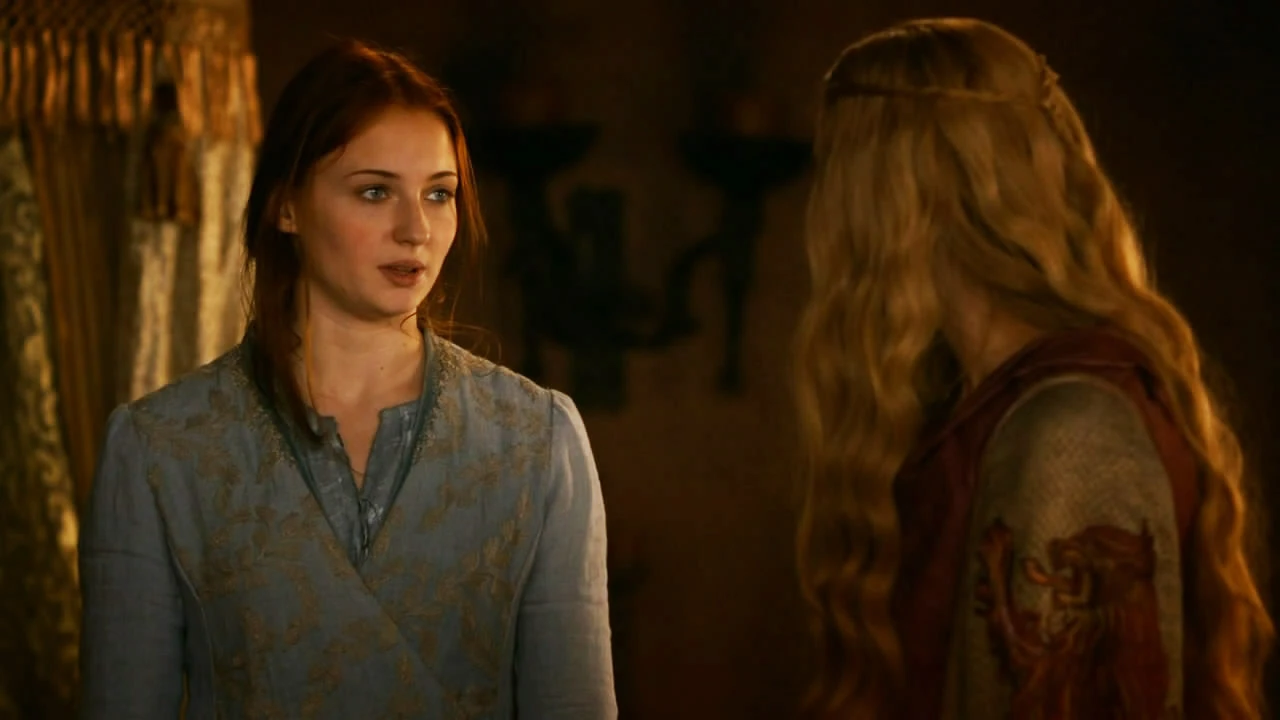 珊莎被带到了摄政王后瑟曦·兰尼斯特面前,瑟曦一反常态的安慰珊莎,并且建议她应如何对待乔佛里。想到乔佛里对珊莎的折磨以及平日里种种暴行, 瑟曦回忆说当她生乔佛里的时候,栾生弟弟詹姆·兰尼斯特始终都在身边陪伴她,而乔佛里永远都不会对珊莎作出类似的爱的表示。瑟曦坚信珊莎和乔佛里不会相爱是件好事,她告诉珊莎“你爱的人越多,你就越薄弱”。